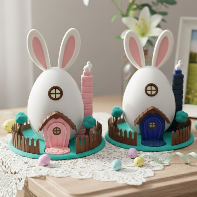 Casinha do Coelhinho da Páscoa decorativa completa em 3D, uma peça cheia de encanto que transforma a decoração com delicadeza e magia. A casinha tem aproximadamente 18 cm de altura! Rica em detalhes, cria um cenário lúdico e acolhedor, perfeito para celebrar a Páscoa de forma especial. Disponível nos modelos nas cores azul e rosa, é ideal para compor ambientes harmoniosos, trazendo charme, alegria e um toque artesanal à decoração.