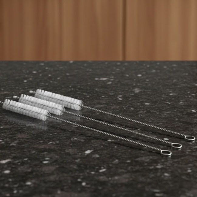 Kit com 3 escovas para limpeza de canudos reutilizáveis, ideal para garantir higiene completa no dia a dia. Possuem cabo em aço inox de 22,5 cm, resistente, durável e fácil de manusear, alcançando toda a parte interna do canudo com eficiência. As cerdas flexíveis removem resíduos com facilidade, mantendo seus canudos sempre limpos e prontos para uso. Indicado para canudos de inox, vidro, plástico ou silicone, é perfeito para uso doméstico, restaurantes, bares e cafeterias. Prático, sustentável e indispensável para quem preza por limpeza e cuidado nos detalhes.