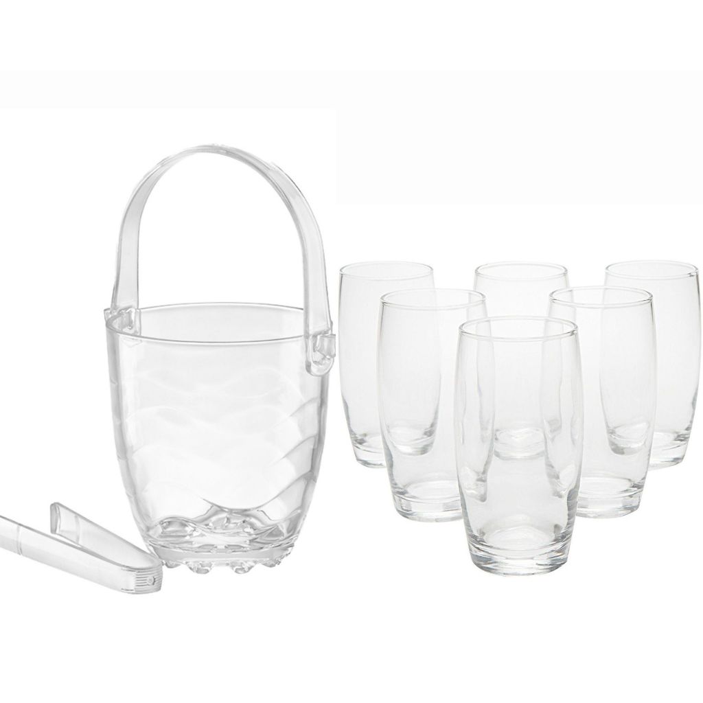 Este conjunto da Nadir é perfeito para servir diversas bebidas em diferentes ocasiões. Composto por 6 copos long drink e um balde de gelo, ele oferece praticidade e elegância para suas reuniões com amigos e eventos especiais.