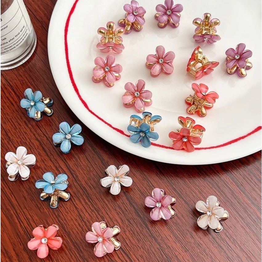 Um encanto em miniatura! Estas mini piranhas douradas são decoradas com florzinhas coloridas e uma pedrinha de strass no centro, trazendo um toque de delicadeza e alegria para seus looks e acessórios.