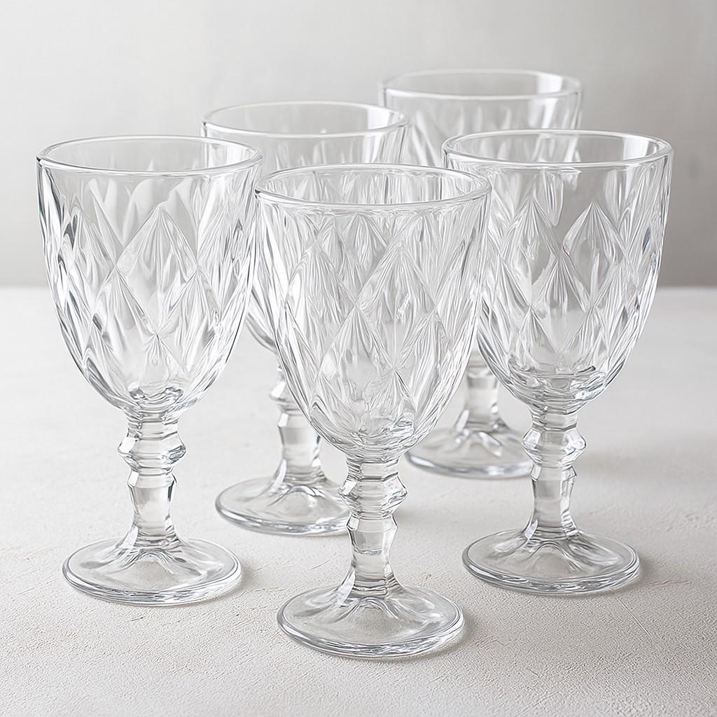Elegantes e versáteis, as taças da linha Diamond são perfeitas para servir água, vinho ou sucos com muito estilo. Fabricadas em vidro de alta qualidade, possuem design sofisticado com detalhes trabalhados que dão um toque especial à mesa.