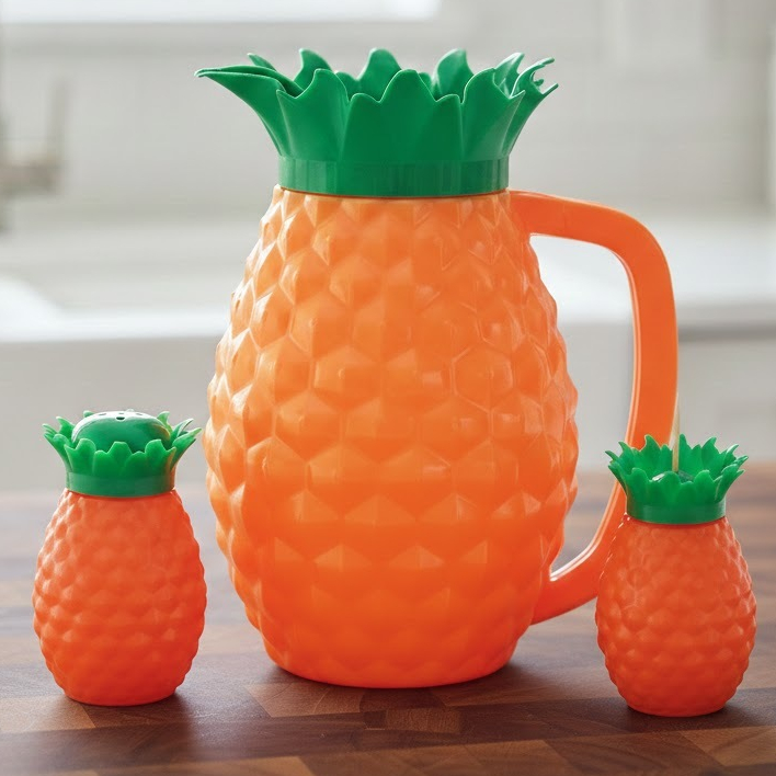 O Kit Abacaxi com 3 Peças é perfeito para quem busca funcionalidade e charme na hora de servir e organizar a mesa. Composto por uma jarra para suco de 1,5 litro, um saleiro e um paliteiro, o conjunto traz um design alegre inspirado no abacaxi, adicionando um toque decorativo e descontraído ao ambiente. A jarra possui excelente capacidade para servir sucos, água e outras bebidas com praticidade, enquanto o saleiro e o paliteiro completam o kit com utilidade no dia a dia. Ideal para uso familiar ou para receber convidados, este conjunto une beleza, organização e praticidade em cada detalhe.