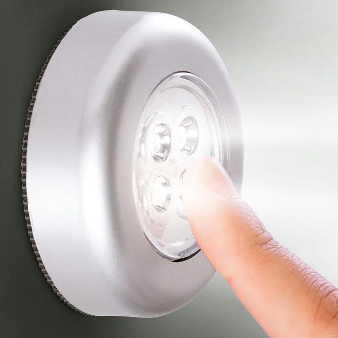 Em plástico. Tamanho: 6 cm. Utiliza 3 pilhas AAA, não inclusas. Sem opção de cor. Com base adesiva