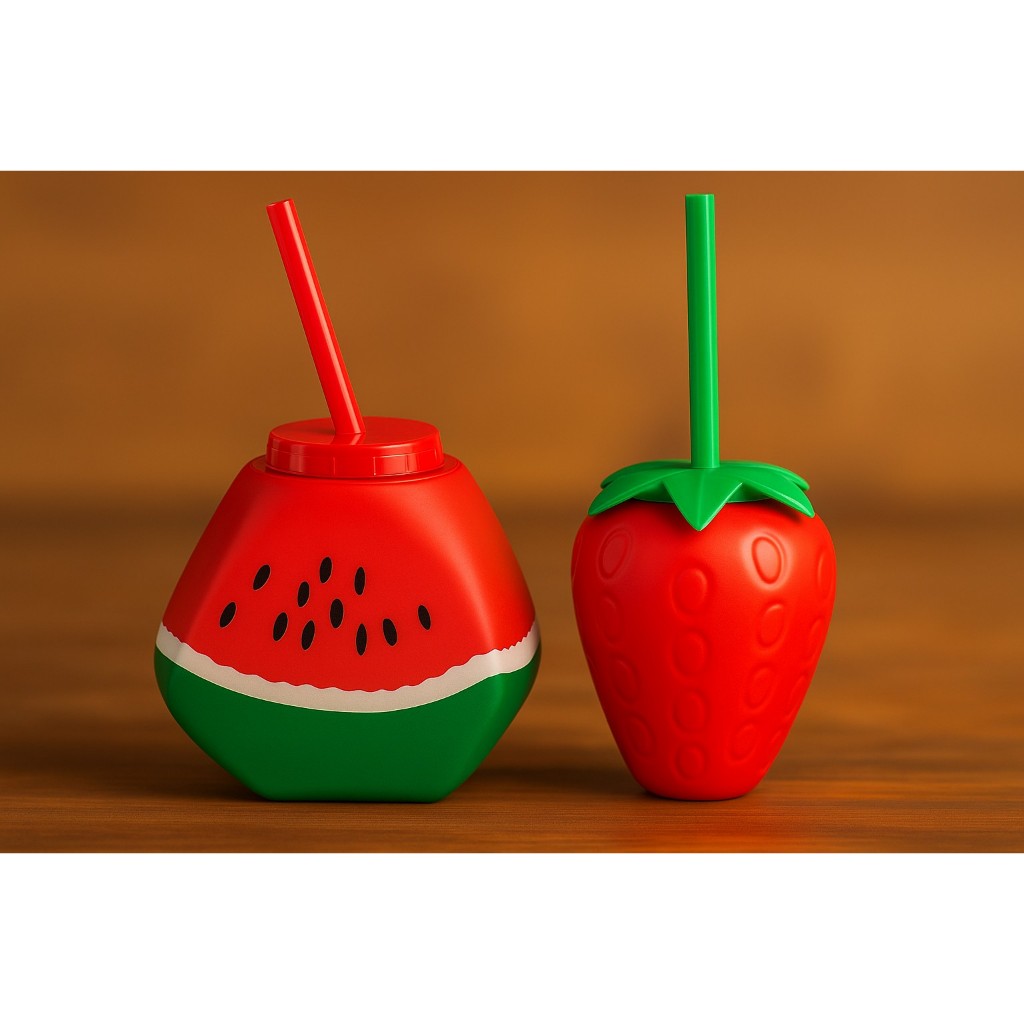 Já o copo em formato de morango possui base vermelha, tampa verde em formato de folhas e canudo reutilizável combinando. Feito em polipropileno, é durável e garante um toque de charme e diversão às suas bebidas.