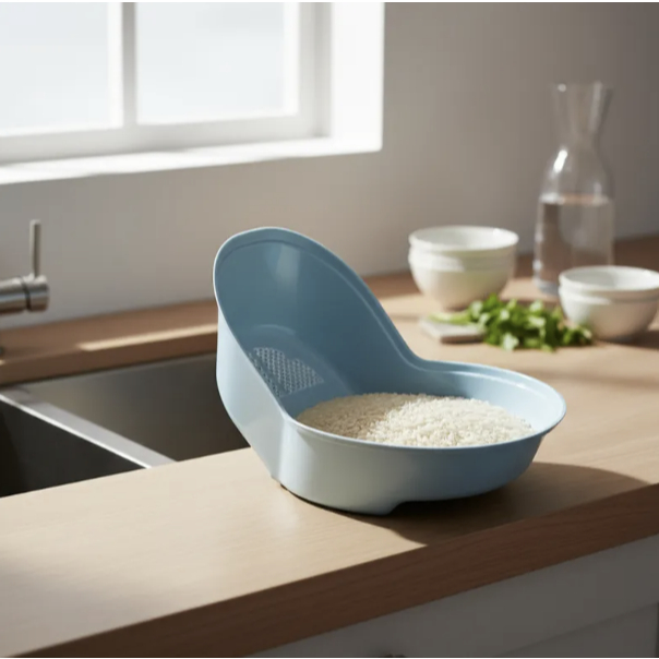 O escorredor possui um encaixe para mão, facilitando no momento do uso para que não escorregue.