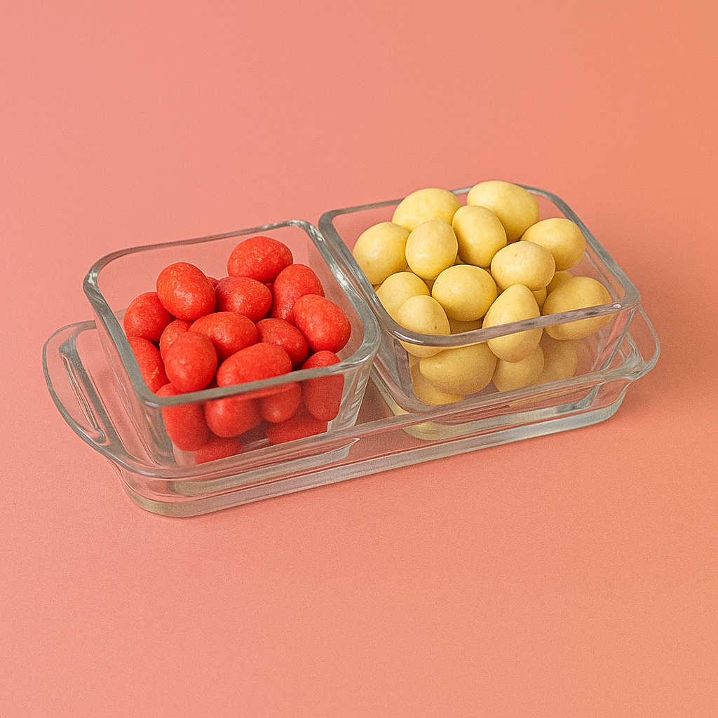 Sirva com charme e praticidade! Esta petisqueira de vidro 3 em 1 conta com uma travessa grande e duas tigelinhas menores, perfeita para molhos, petiscos, entradas e acompanhamentos.